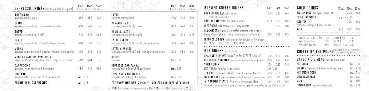 - Bardo Kid's Menu: Treat the little ones to Hot Spiced Cider and Chocolate Milk, ensuring everyone feels welcome.